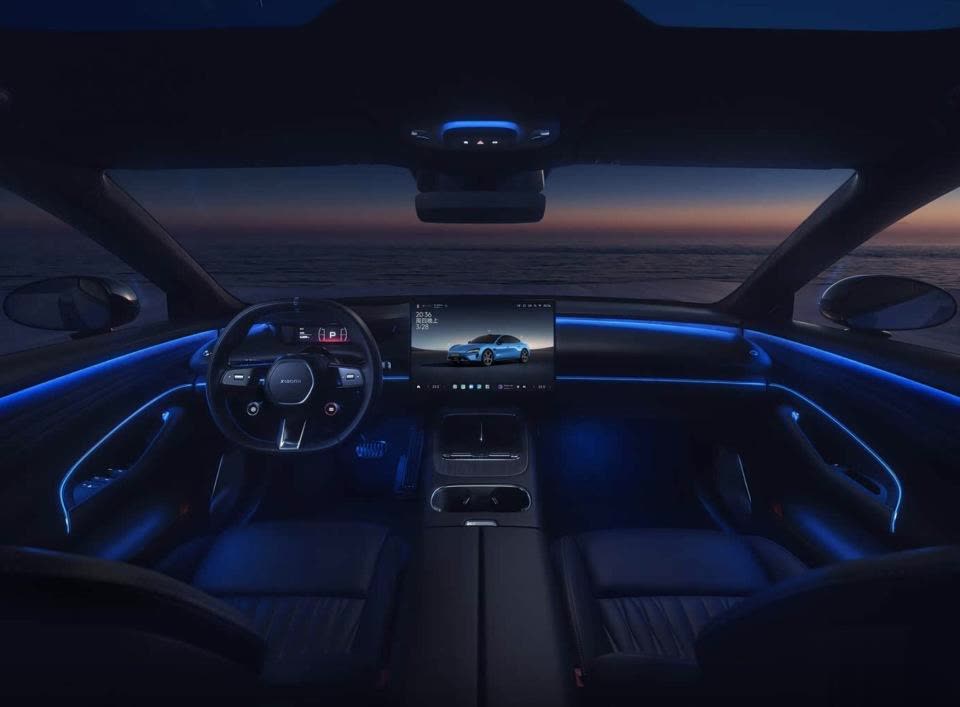 外不雅方面,新车在保留经典溜背造型基础上优化细节质感,辨识度权臣擢升。新增“卡布里蓝”专属车漆,以青蓝基底搭配纳米级钴蓝情愫,在不同光照下呈现地中海浅海般的渐变成果,替代此前阛阓秉承度较低的熔岩橙配色。车身尺寸方面,其长宽高保管4997/1963/1455mm,轴距3000mm,风阻悉数保执0.195的优异水平,兼顾气场与能效。前脸水点大灯里面结构不变,前包围进气启齿微调,格栅中部集成毫米波雷达,兼顾好意思不雅与实用性;外后视镜壳选定全新玄色涂装,搭配20英寸锋刃式铝合金轮毂,理会氛围进一步强化。