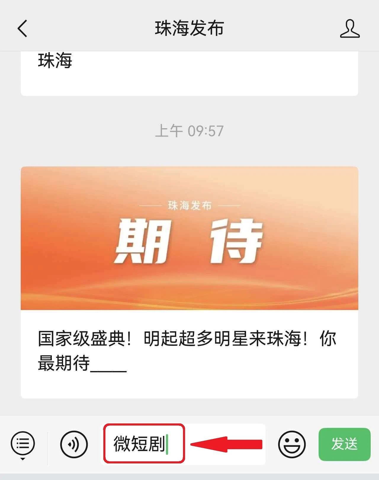 1.温雅“珠海发布”微信公众号,快乐彩在公众号“私信”中回报“微短剧”,点击对应连络即可参与报名。